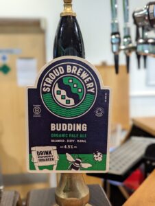 In the Green Man we opted for a pint of Budding from the local Stroud Brewery which was an Organic Pale Ale and very tasty. This was served in, yes you guessed it, a recyclable cup.