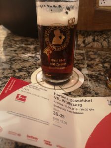 If you’re heading to a match at the Fortuna Dusseldorf Stadium, then wear colours. It is normal for fans in Germany to be decked out in club colours, just a scarf will make you feel underdressed (which is what we wore). For good information on the club check out Chris who runs UKFortuna on Twitter who posts useful information too (as heard on Talksport this week)