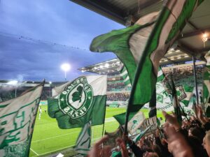 It was Greuther Fürth who took the lead in the 20th minute, and as normal for football in Germany, the beers flew through the air in celebration. It was the second half which saw most of the action. Hansa Rostock equalised in the 57th minute however Greuther Fürth were back in front just minutes later for what seemed to be a well deserved victory.