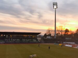 The match kicked off at 7pm local time and Homburg were easy on the eye playing good football. The local opposition were hungry and biting hard however whilst Pirmasens were the most aggressive it was Homburg who found themselves reduced to 10 men when Seonghoon Cheon was alleged to have fouled the goalkeeper and a red card seemed excessive. The home crowd rightly were annoyed as the goalkeeper was quick to recover and the booing was consistent throughout the 90 minutes everytime he was in possession.