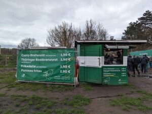 As we were walking to the Alfred-Kunze Sportpark, the amount of green and white graffiti increased and we could see the floodlights in the distance.