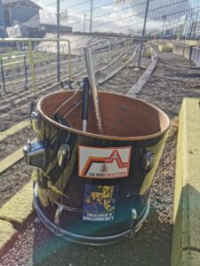 Entrance inside the stadium was easy. The tickets which we had purchased on-line for 11 Euro gave us access to all standing areas of the ground. Immediately inside the main entrance were several stands serving food, a bar and a fanshop. Paying on card was not possible for food or drink, whilst the Fan Shop didn’t accept foreign debit or credit cards. Not taking cash was a massive oversight, however fortunately there is a cashpoint 500 yards away from the Stadium so we left and returned with cash to continue our experience.